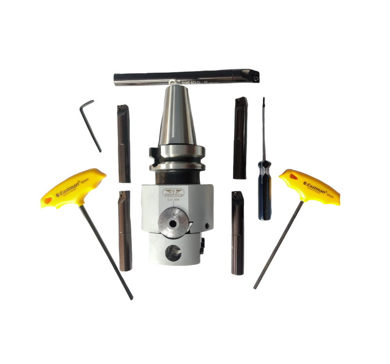 1. Dia 62 mm R8-Integrated Micro Boring Head Kit with a boring capacity of 10-125 mm is a rigid and versatile unit and is a must for any Tool Room workshop.